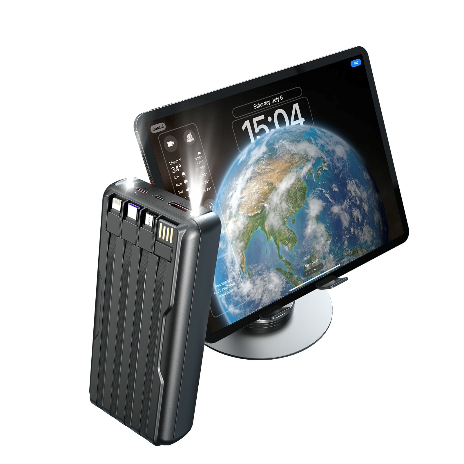 The Xkin 20000mAh Power Bank is more than just a backup charger — it’s a multi-device solution designed for modern lifestyles. With built-in cables, a powerful flashlight, and a huge battery, it keeps you prepared for any situation.